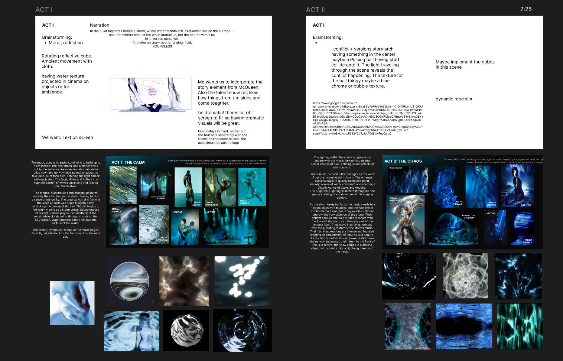 The theme for this year’s show was Fluidity, as a celebration of concept in all its forms—embracing movement, nature, gender, life, and everything beyond traditional binaries. From that theme, a story was developed centering around a storm. This story unfolded as a four-act show: the calm before the storm, the storm, and stages of renewal after the storm.