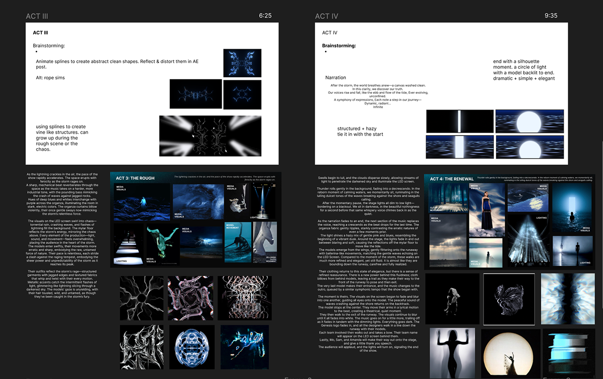 Leading up to the show, I also worked closely with set designer Amanda ’25 and motion designer Abigail Atwell ’26, who helped create the visuals for the LED screen, and Luka Zukhubaia 27', who produced the music for the show.